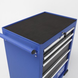 Carro de taller metálico con 5 cajones con estructura reforzada fabricado con chapa de 0.8 mm de acero con tratamiento anti-corrosión. con protección de pintura epoxi. secado al horno. lo que le da una robustez y capacidad de carga muy elevadas.