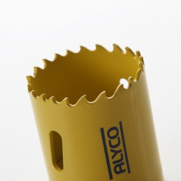 Las coronas dentadas se pueden usar para aplicaciones en metales. maderas y plásticos en general. Las coronas de Alyco tienen una base reforzada que reduce las vibraciones que se producen mientras se realiza el trabajo. Disponen de un dentado variable 4/6 con ángulo de corte positivo y ventanas laterales en el cuerpo de la corona para la extracción fácil del material cortado. Para mejorar sus prestaciones se ha aplicado un tratamiento de endurecimiento a los dientes alcanzando durezas 63-65HRC La profundidad de corte de nuestras coronas alcanza los 38mm