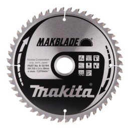 Especificaciones técnicas Diámetro de la cuchilla: 216 mm Dimensión del bordillo: 2,4 mm Cantidad de dientes: 48 Tamaño del orificio (diámetro del orificio): 30 mm Ángulo de inclinación: 5° Tipo de hoja de sierra: Makblade Cantidad: 1