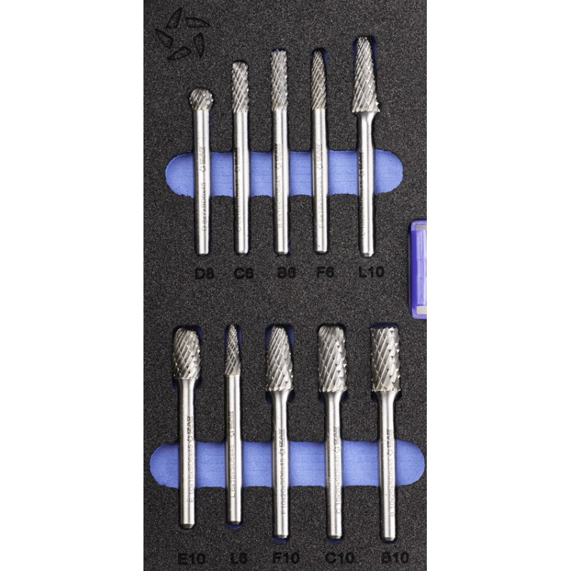 JUEGO FRESAS ROTATIVAS METAL DURO - 9201 - SET 10 PCS (L-F-B-C-E/D)
