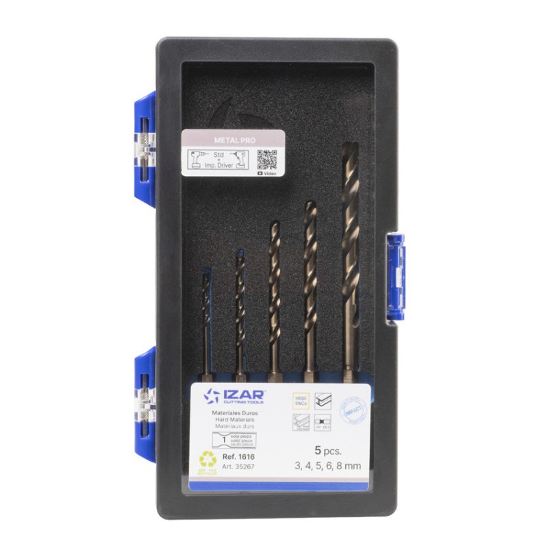 BROCA HSS Co HEXAGONAL 1/4 LARGA DIN E6.3 METAL - 1616 - EXPO 6 SETS 03-08 mm