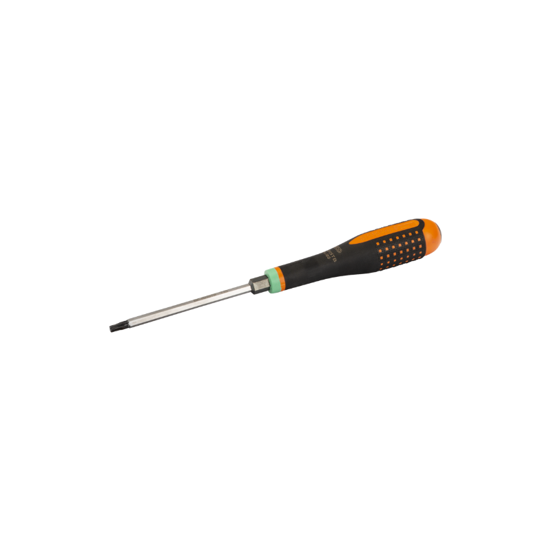 Destornillador de impacto desarrollado acorde al proceso científico ERGO™ Para apretar, aflojar y cincelar tornillos de cabeza TORX Punta fosfatada para proporcionar la máxima precisión. Mango de tres componentes que garantiza la máxima comodidad del usuario y cuyo material suave con superficie estriada proporciona un agarre superior y una mayor fuerza de transmisión. Fácil de elegir la punta correcta con el mango codificado por colores y el símbolo permanente en el extremo curvado Cara plana para impedir que rueden. La varilla y la tuerca de perfil hexagonal permiten utilizar una llave para realizar trabajos que requieran más apriete. La varilla atraviesa el mango y garantiza que no se pierda la energía del golpe. El adaptador metálico ofrece protección durante los trabajos que requieran un gran impacto. Herramientas duraderas gracias a la varilla de acero aleado de alto rendimiento cromado y totalmente templado que proporciona una mayor protección contra la corrosión. Máximo confort con el mínimo esfuerzo gracias a un diseño ergonómico El mango de tres componentes combina un núcleo resistente con un buen agarre. La varilla cilíndrica con diámetro pequeño ayuda a apretar y aflojar los tornillos rápida y fácilmente Es fácil elegir la punta correcta gracias al código de colores.
