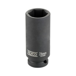 Llave de impacto fabricada en Acero al Cr-Mo tratado además térmicamente para aumentar su resistencia y terminados en superficie con un tratamiento de Pavonado. El vaso se ha diseñado según DIN 3129 respetando la concentricidad del hexágono con el cuadradillo para reducir vibraciones. El vaso está dotado también de ranuras de desahogo para reducir el stress mecánico de la pieza y evitar dañar las aristas de las tuercas. En el diseño se ha buscado una forma compacta para alcanzar lugares de difícil acceso.