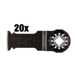 Descripción Cuchilla multiherramienta STARLOCK especialmente diseñada para cortar materiales como madera, contrachapado y epoxi. Esta hoja de Bi-metal tiene un ancho de 32 mm y una longitud de trabajo de 50. La hoja tiene 14 TPI. El paquete contiene 20 hojas.