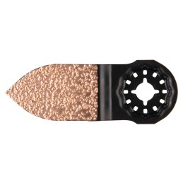 Cuchilla multiherramienta con soporte STARLOCK. También es adecuada para multiherramientas con soporte STARLOCK PLUS y STARLOCK MAX. STARLOCK proporciona un rápido clic de bloqueo de la cuchilla y es capaz de transferir alta fuerza. Hoja STARLOCK está codificado por colores para una fácil identificación. La cuchilla está diseñada para trabajos de extracción y raspadura. Tiene una punta de carburo de tungsteno soldada al borde cortante de la cuchilla que hace que esta hoja muy dura sea extremadamente resistente a la abrasión y el sobrecalentamiento. Estas características hacen que la cuchilla sea adecuada para diversos materiales.