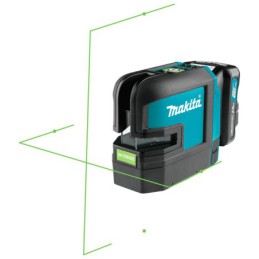 Descripción Láser en cruz autonivelante con líneas verdes verticales y horizontales. Apunta hacia arriba y abajo, izquierda y derecha. Visibilidad de 35 metros. Todas las funciones son fáciles de manejar desde un solo botón. El láser es resistente al polvo y al agua con clasificación IP54 y su tiempo de funcionamiento con una batería de 4.0Ah es de unas 20 h. Sin batería, sin cargador en equipo básico.
