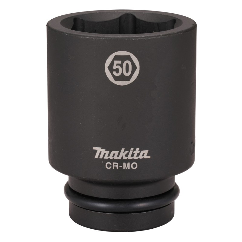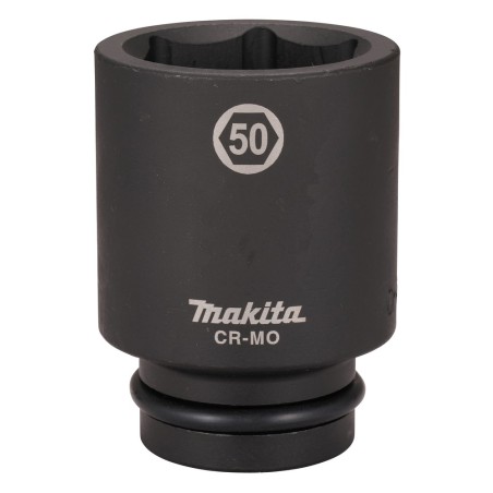 La llave de vaso de 50 mm es adecuada para llaves de impacto equipadas con un eje de 1». Fabricado en acero CR-MO (cromo-molibdeno) duradero y de alta calidad. Incluye pasador de bloqueo y junta tórica. Longitud 100 mm.