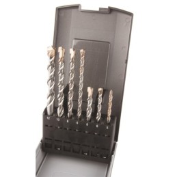 Descripción Juego de brocas SDS-PLUS para trabajar con hormigón. La hoja de doble filo permite una perforación rápida. La punta de carburo de tungsteno aumenta la eficacia del trabajo. La longitud total de estas brocas es de 110-160 mm con una longitud de trabajo de 50-100 mm y un diámetro de 5-12 mm. El paquete contiene 5 brocas con un estuche de plástico.