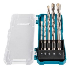 Juego de brocas para taladrar hormigón. El juego incluye brocas para hormigón con punta de carburo de tungsteno. Estas brocas tienen una longitud total de 75-120 mm, una longitud de trabajo de 40-75 mm y un diámetro de 4-10 mm. El paquete incluye 5 brocas para hormigón con un estuche de plástico.